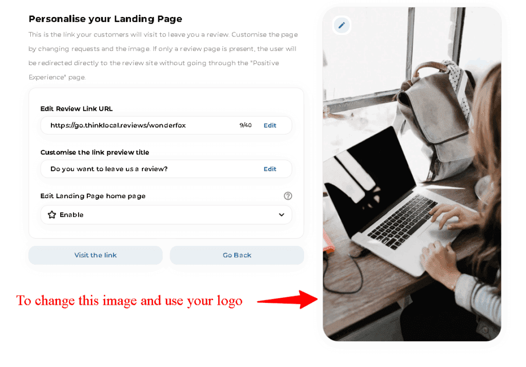 Upload your logo below to receive an optimised image to download and add to your landing page